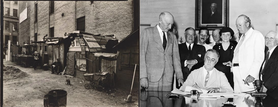 In the United States, the self-identified “liberal” party, the Democratic Party, has historically presented itself as having social democratic values. For example, FDR, a Democratic president from 1933 to 1945, was the president who signed the New Deal into law. This was a set of social democratic reforms which started unemployment and disability insurance, aid for families with children, government help with housing, and many other programs. This belief in social democratic ideals is what has continued to lure Americans into supporting the Democratic Party since. Liberal political parties in capitalist societies have an ideological goal of preserving the existing power structure that allows for capitalist rule over the working class. Due to political pressure or threat of revolution, however, these parties may choose to make a “deal” (like the “New Deal” reforms) with the working class: you continue to accept the rule of capitalists over industry, and we will make them fund safety-net programs that will ensure that even if you fall into poverty, there will be resources to help you survive, instead of just letting you become homeless and starve to death.